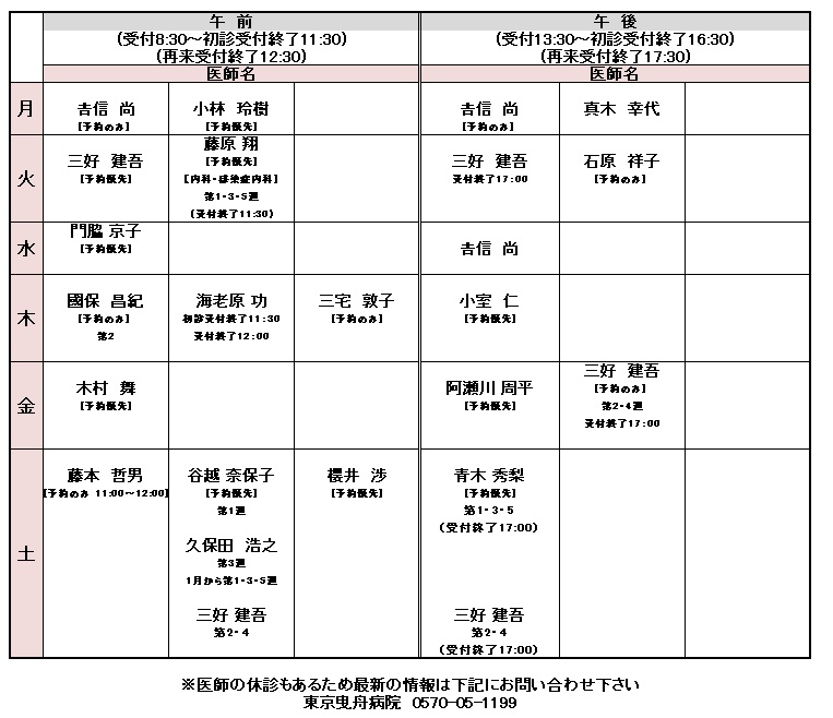 全体的な外来表はこちらでご確認お願いします。
