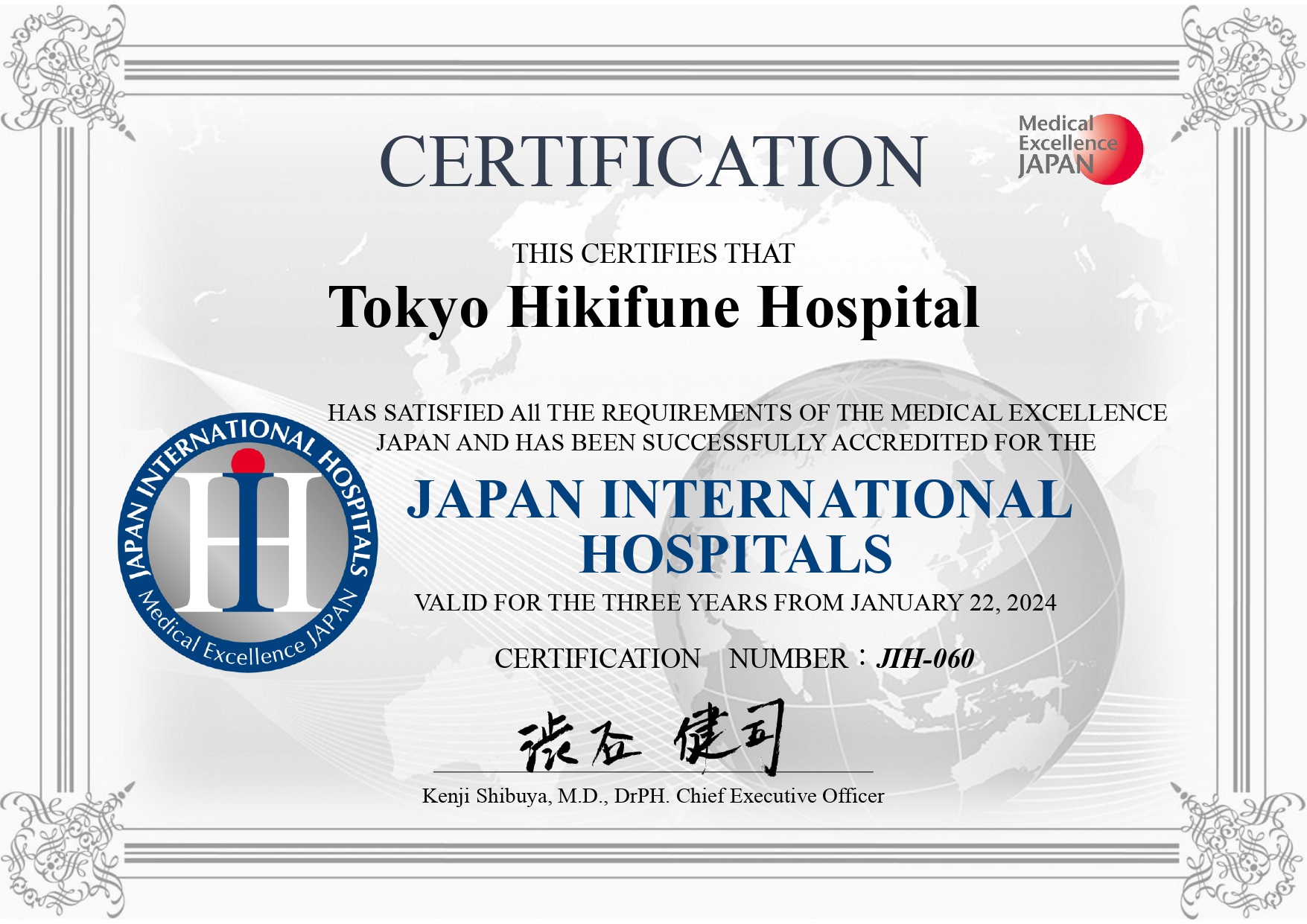 Our hospital has been certified as a JIH Recommended Hospital as of January 22, 2024.